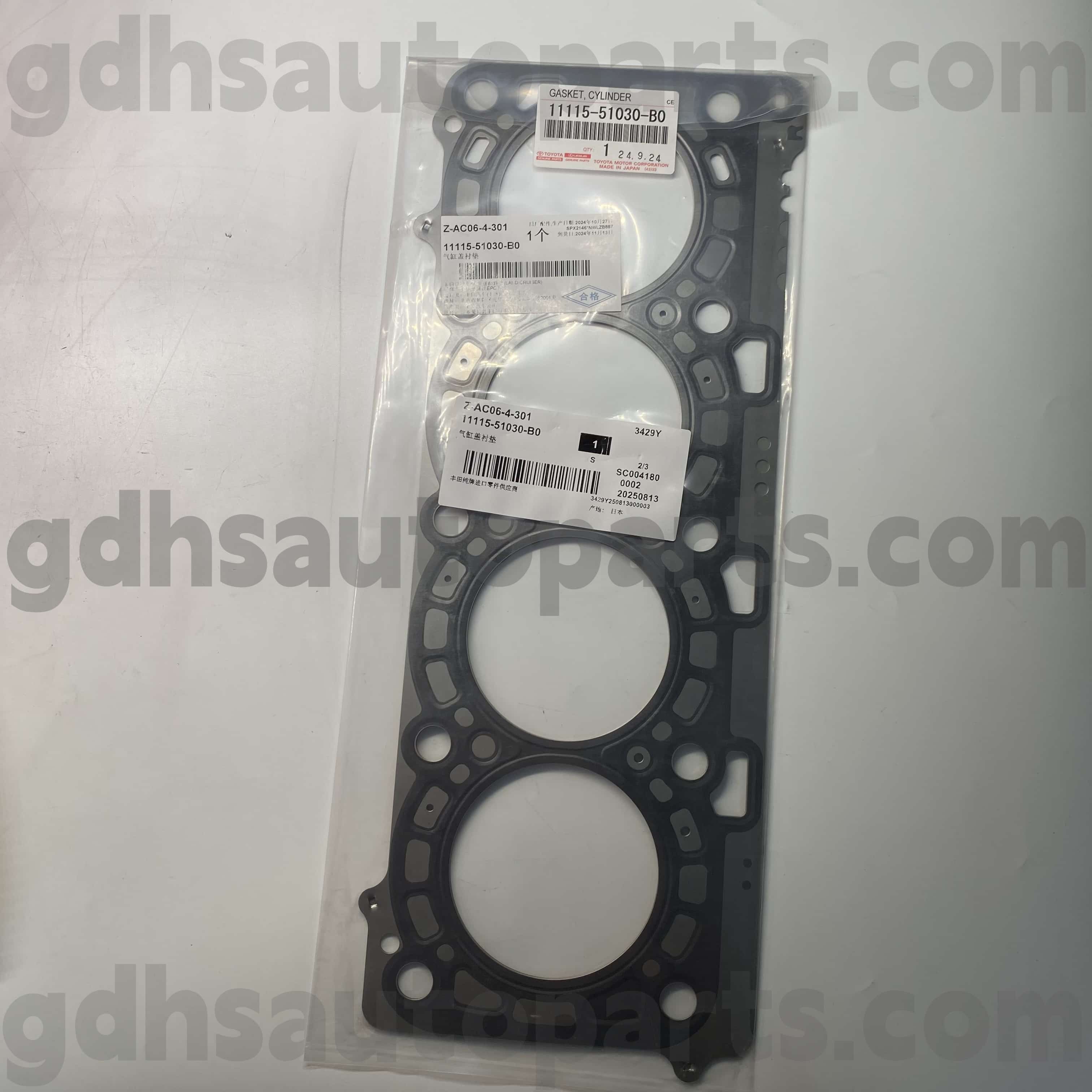 Koti > Tuotteet > Japanilaiset autot > 11115-51030-B0 Toyota aitoja osia oikean sylinterin kannen kumirengas Land Cruiserille, LX450D/570 Alusta no. 1VDFTV VDJ200 0709-